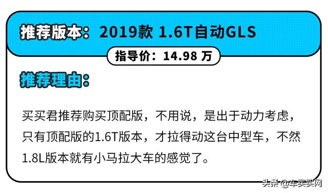 买买君推荐购买凯绅的顶配版,不用说,就是看动力,因为1.6T发动机只有最高配才配备。而1.8L发动机的动力过于弱鸡,想要拉到凯绅这台中型车,有些小马拉大车的嫌疑。